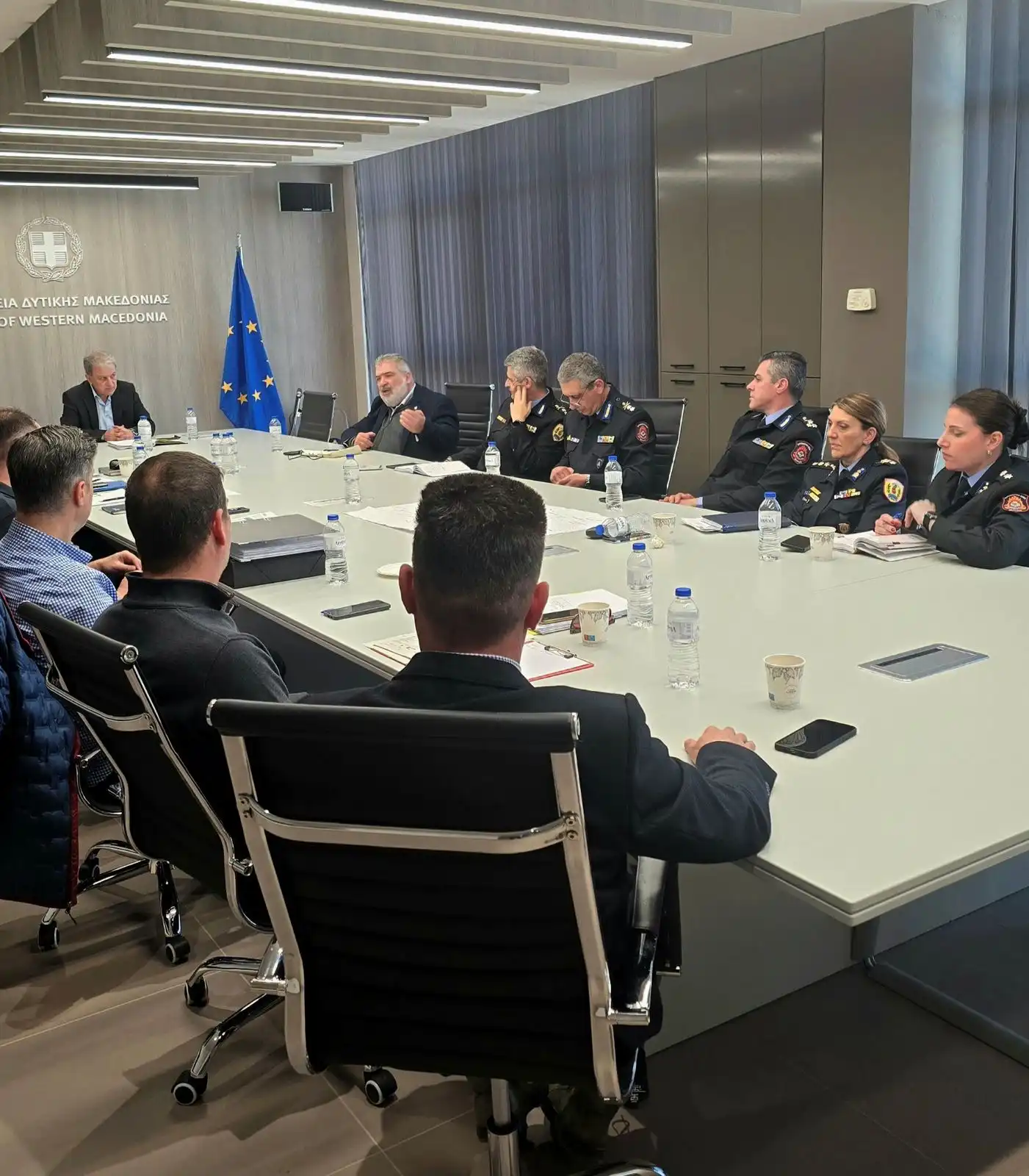 Η εξέλιξη των εργασιών για τις υποδομές εγκατάστασης εξομοιωτή πυρκαγιάς σε αεροσκάφος στις εγκαταστάσεις της Σχολής Πυροσβεστών Πτολεμαΐδας συζητήθηκε στην συνάντηση του Περιφερειάρχη Δυτικής Μακεδονίας Γιώργου Αμανατίδη και του Δημάρχου Εορδαίας Παναγιώτη Πλακεντά με τον Επιτελάρχη του Πυροσβεστικού Σώματος, Αντιστράτηγο Αθανάσιο Μπαλάφα, τον Κλαδάρχη Διοικητικής Υποστήριξης, Υποστράτηγο Αστέριο Τσιούρβα, τον Διοικητή Πυροσβεστικών Ακαδημιών, Υποστράτηγο Παναγιώτη Κυπριωτέλλη και τη Διοικήτρια της Σχολής, Πύραρχο Αρχοντία Σερέτη.