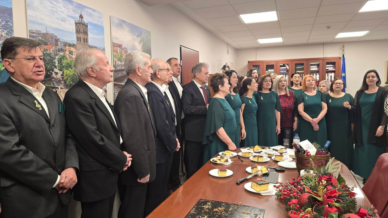 Πρωτοχρονιάτικα κάλαντα έψαλλαν η Χορωδία Δωματίου Κοζάνης, ο Σύλλογος “Κασμιρτζήδις” Κοζάνης και ο Μορφωτικός-Πολιτιστικός Σύλλογος Λευκοπηγής. Το τυχερό φλουρί “έπεσε” στον Περιφερειακό Συμβούλο Χαρίσιο Γκοβεδάρο.